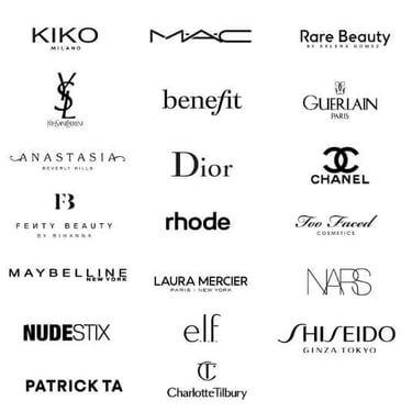 Dior, MAC, Chanel, YSL, Rare Beauty, Fenty Beauty, Too Faced, Benefit, Guerlain, Loreal, Sheglam, Maybelline, Kiko, Rhode, Laura Mecier, Nars